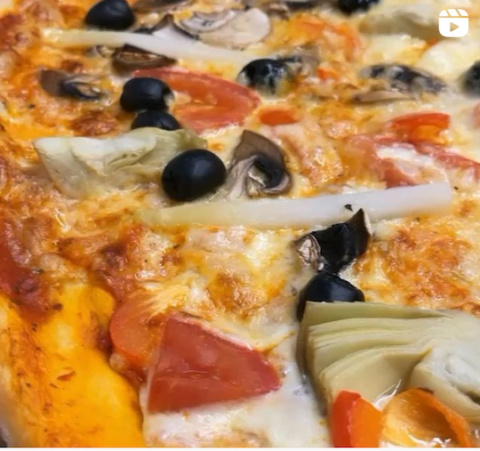 Champinjoner, feferoni, färsk paprika, kyckling, lök, ost och tomatsås